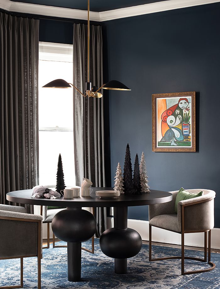 Swap bright holiday patterns for solid, soothing tones—think soft creams, charcoal, warm browns, and muted winter blues. These colors add depth and dimension while keeping your home feeling calm and cohesive.